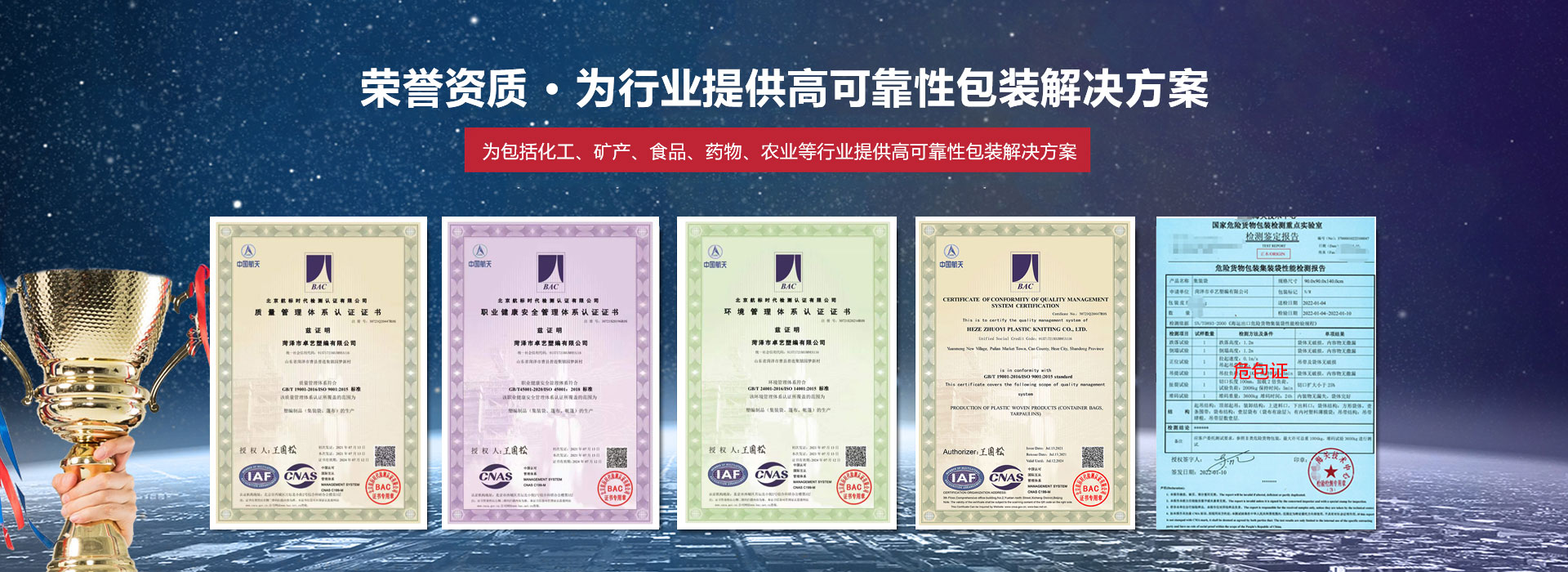 ?菏澤市卓藝塑編有限公司是一家綜合包裝企業,始創于2009年,公司核心業務是FIBC(柔性集裝袋) 的研發與生產制造,我們向全球中高端客戶提供可信賴、高性價比、可定制化產品,常規集裝袋和防靜電集裝袋為主,為包括化工、礦產、食品、藥物、農業等行業提供高可靠性包裝解決方案。公司采用先進靈活的運作模式,與您達到雙贏的效果。公司在國內設立的包括海外區在內的十個營銷經營部,以區域責任制對合作商進行全程市場及技術指導支持。設有成都、上海、西安、長沙、哈爾濱五個物流配送中心,輻射全國各地...